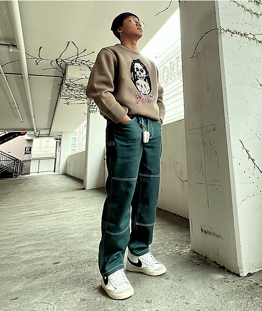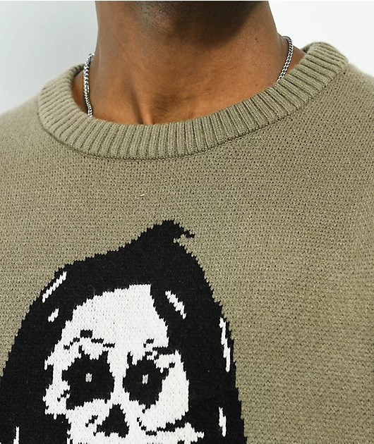 The Clairvoyant grey knit sweater from Welcome offers a thick construction for a premium feel, making this a winter essential. A jacquard knit graphic of a reaper holding a crystal ball with Welcome logo text completes this high quality pullover sweater.