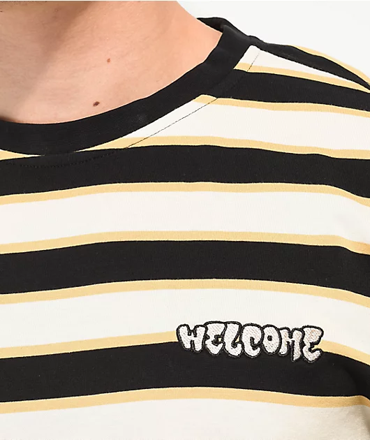 The Cooper t-shirt from Welcome comes in a long sleeve cotton construction with bone, yellow, and black horizontal stripes throughout. Adorning this regular fit t-shirt is black and white Welcome script embroidered onto the left of chest.