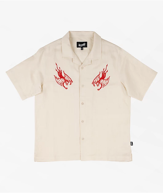 Welcome Hellion Bone Short Sleeve Button Up Shirt