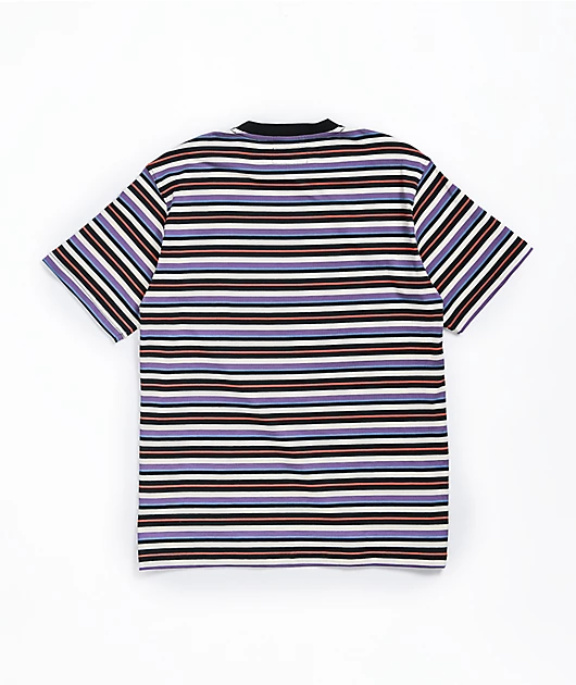 Bring fun pattern into your daily looks with the Welcome Surf Stripe Space t-shirt. Purple, black and red horizontal stripes throughout give this tee a bold splash of classic pattern and the embroidered logo script on the left chest adds subtle branding f