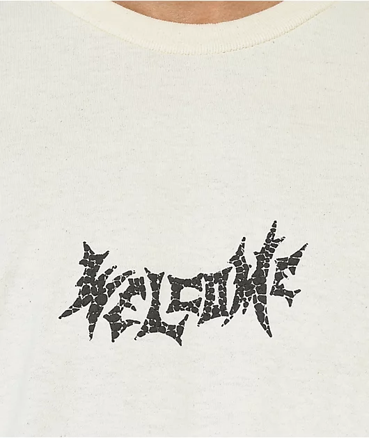 The bone Tali Croc Welcome t-shirt has a classic cotton fabrication, crewneck collar, and short sleeve silhouette, making it easy to pair with all sorts of tops and bottoms. This Welcome skate shirt comes in a bone white colorway with puff print brand scr