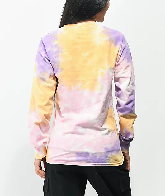 Grab some grass-friendly style for your ‘fits with the Green Life tie dye long sleeve t-shirt from Your Highness! Covered in pastel swirls in shades of pink, orange, and purple, this shirt is sure to lend some eye-catching color to any outfit, while scree