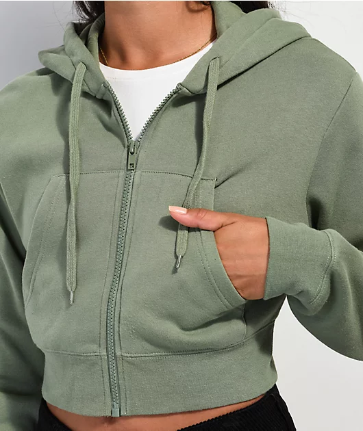 The Kya hoodie from Zine comes in a calming green colorway, with a full zip closure and a cropped hemline. A versatile layering piece made from a super soft cotton blend, the cropped hoodie features a warm brushed interior, a drawstring adjustable hood, k