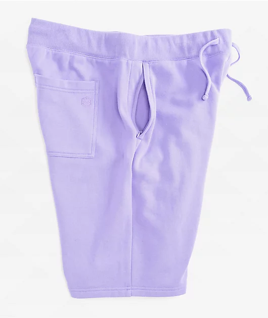 The stylish Silas sweat shorts from Zine come in a soft lilac construction made of a cotton-poly blend; perfect for lounging or hitting the streets. For easy organization, these shorts have dual slash hand pockets and a back right pocket adorned with a sm